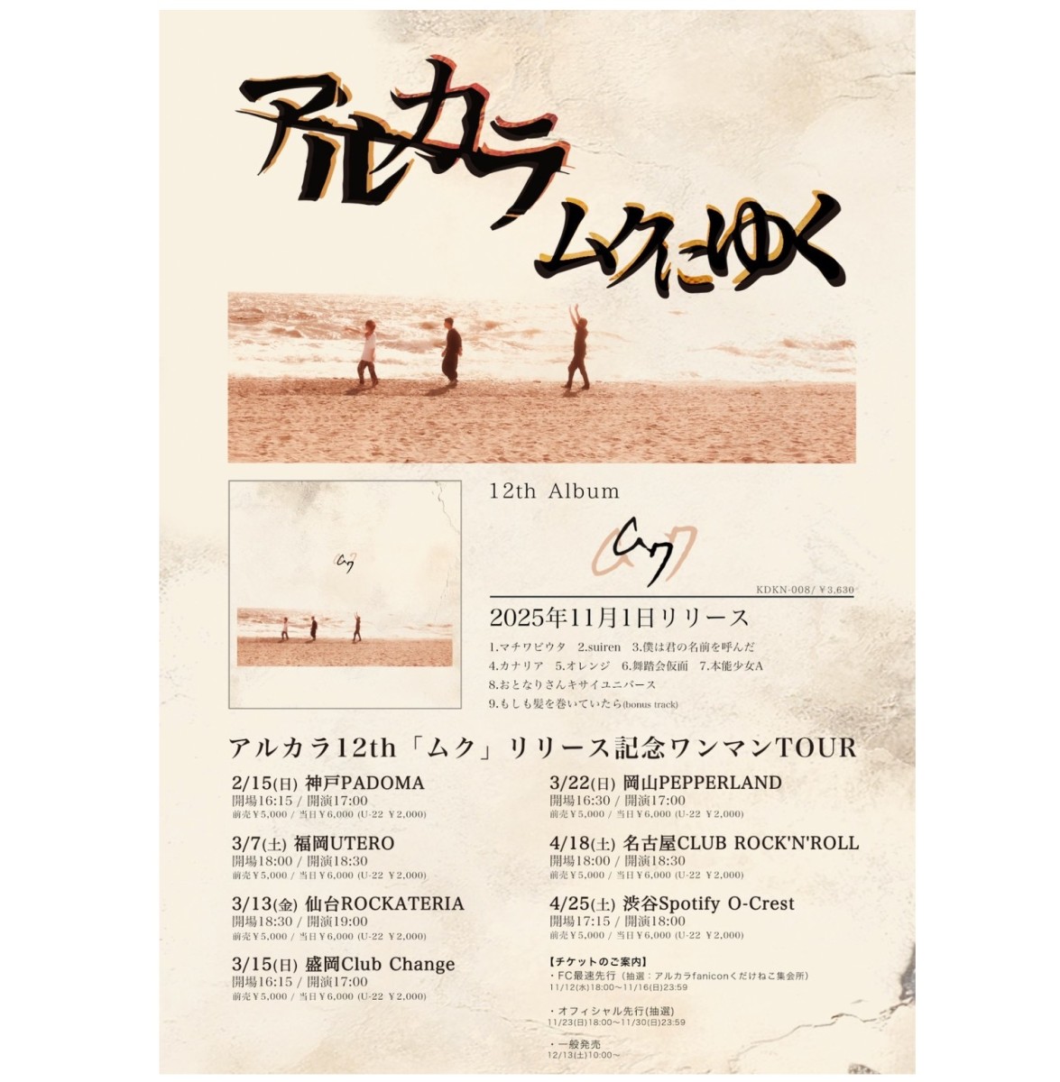 【福岡公演】アルカラ12th「ムク」リリース記念ワンマンTOUR 「ムクにゆく」開催日時 2026/03/07(土)